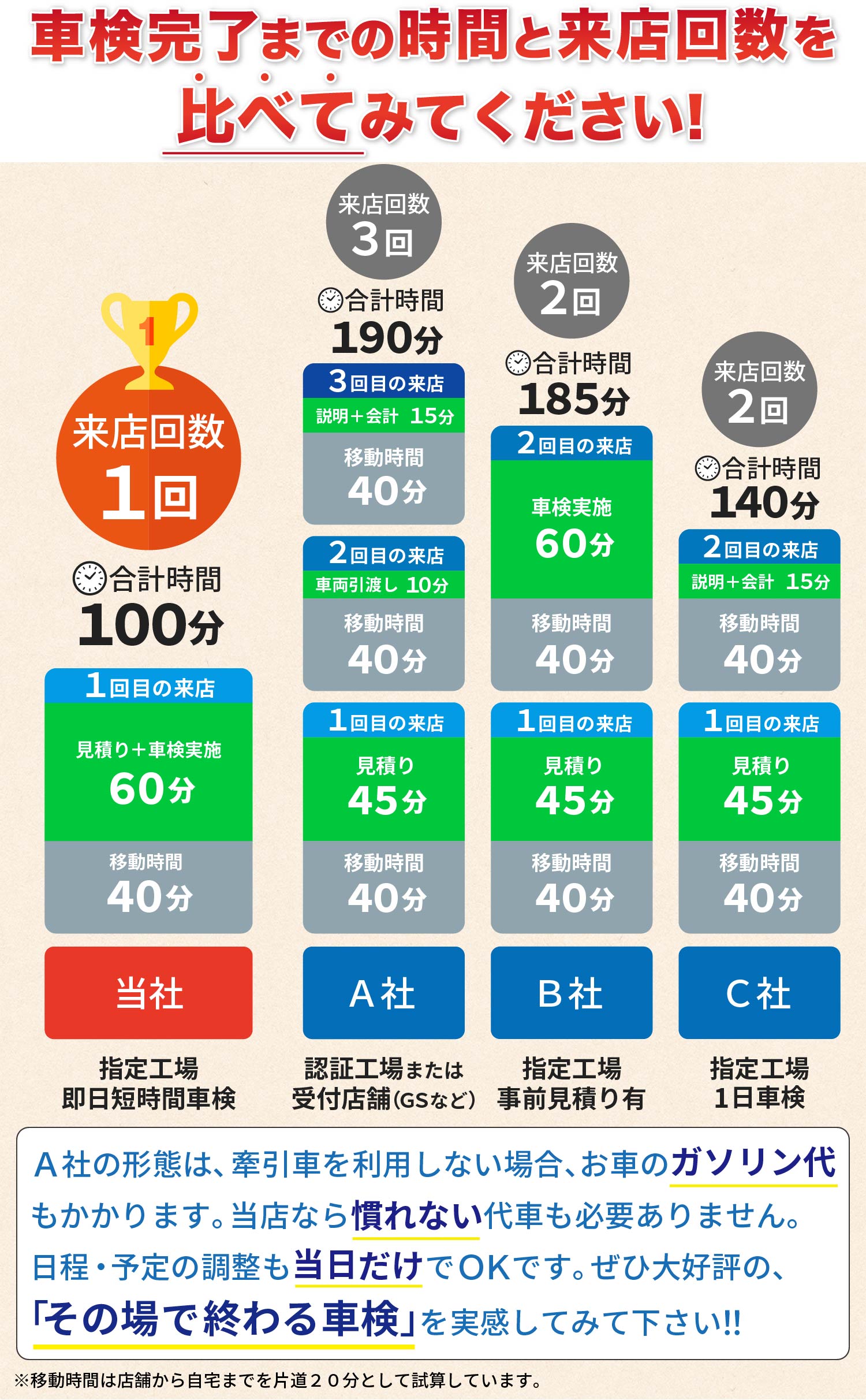 長年積み重ねてきた経験やノウハウによって、以前のように車検は何日も