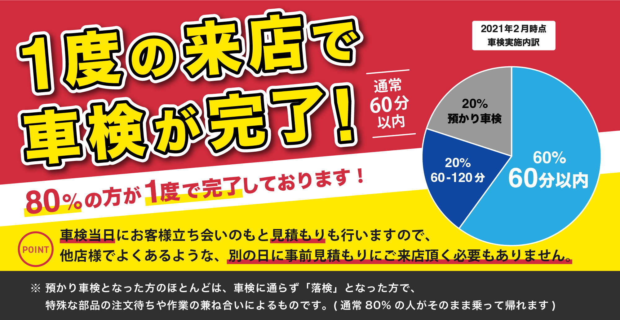 ※代車は、短時間で車検が完了できない場合に限らせて頂いております。ご容赦ください。