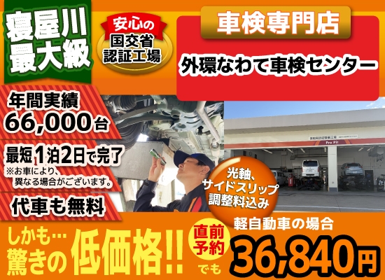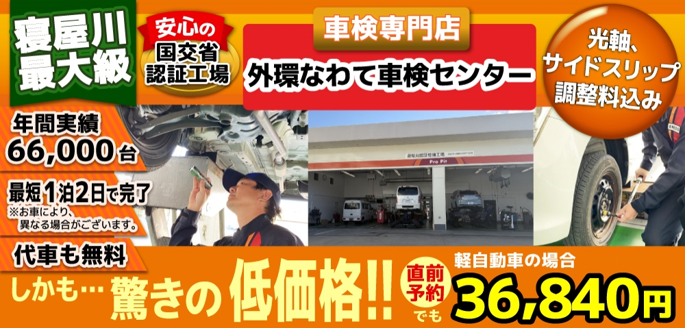 寝屋川・四条畷・大東・門真で車検が格安36,840円!